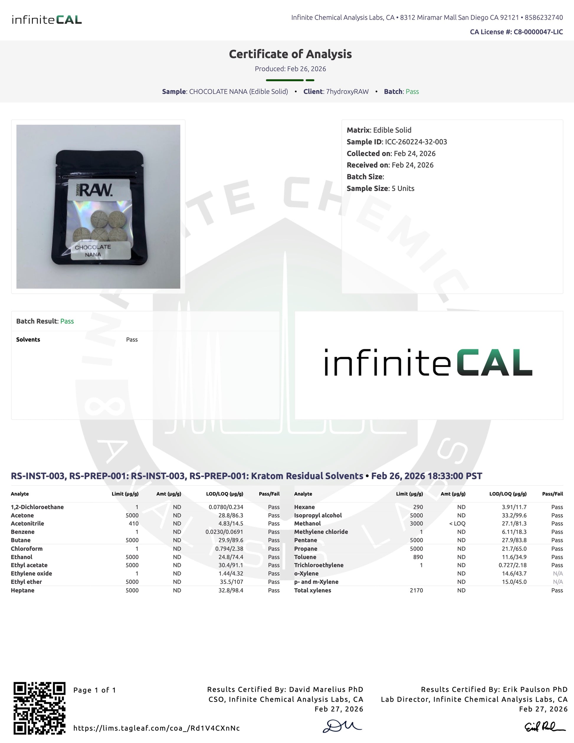 LABS FOR POTENCY (83MG TOTAL ALKS) AND SOLVENTS - RELEASED 02.25.26