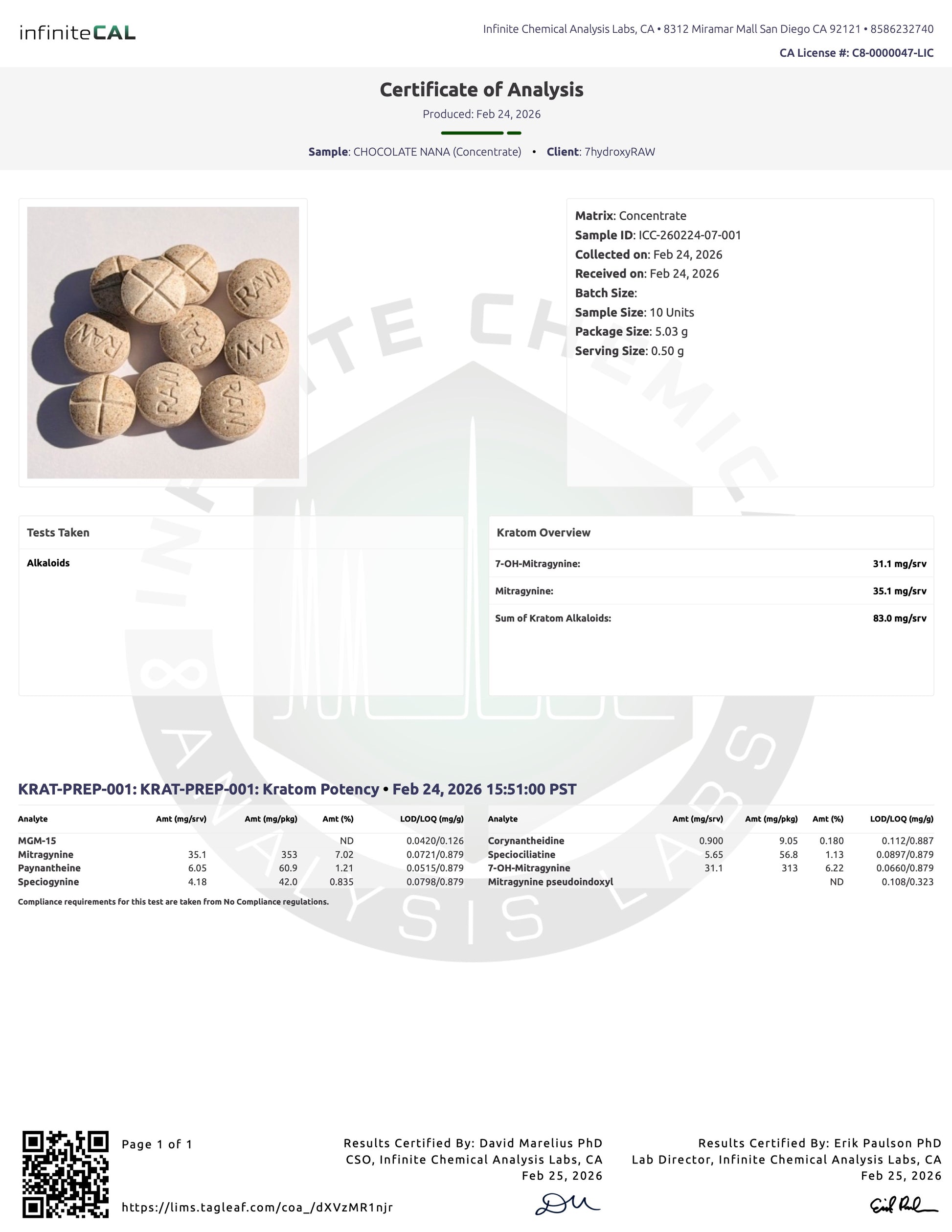 CHOCOLATE NANA 🍫🍌 — TOTAL ALKS 83MG (31.1MG 7-OH / 35.1MG MIT) - DEBUT 02.25.26