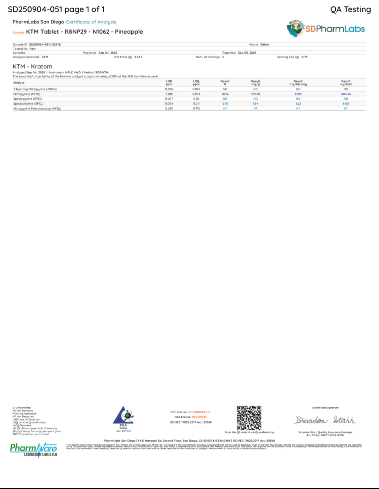 INGREDIENTS: Mitragynine, Sorbitol, Magnesium Stearate, Natural & Artificial Flavor, Silicon Dioxide, Bitter Blocker