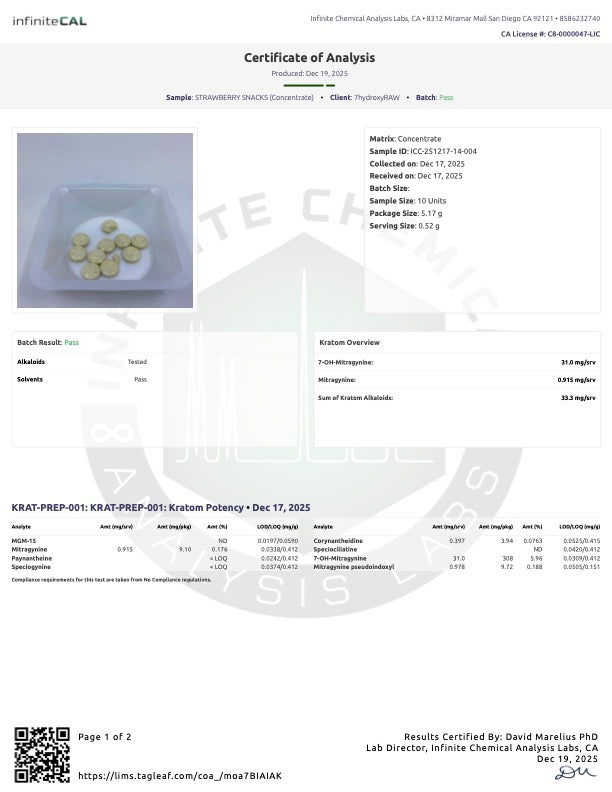 STRAWBERRY SNACKS 🍓🍰 30MG (LABELED) - TOTAL ALKS 33.3MG (31MG 7-OH) - NEW BATCH - 12.19.25