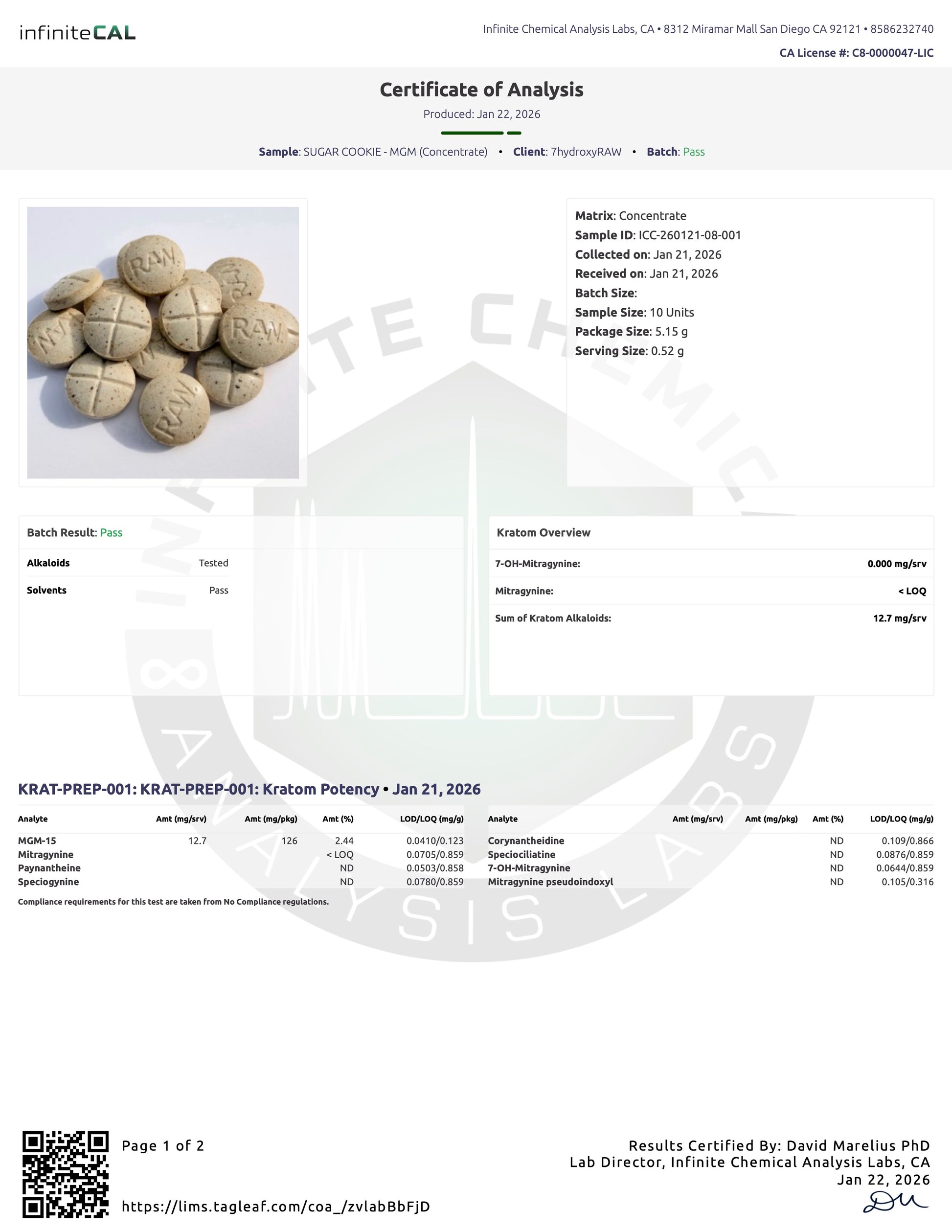 LABS FOR POTENCY 1 (12.7MG) AND 2 (15MG) AND SOLVENTS - 01.26.26
