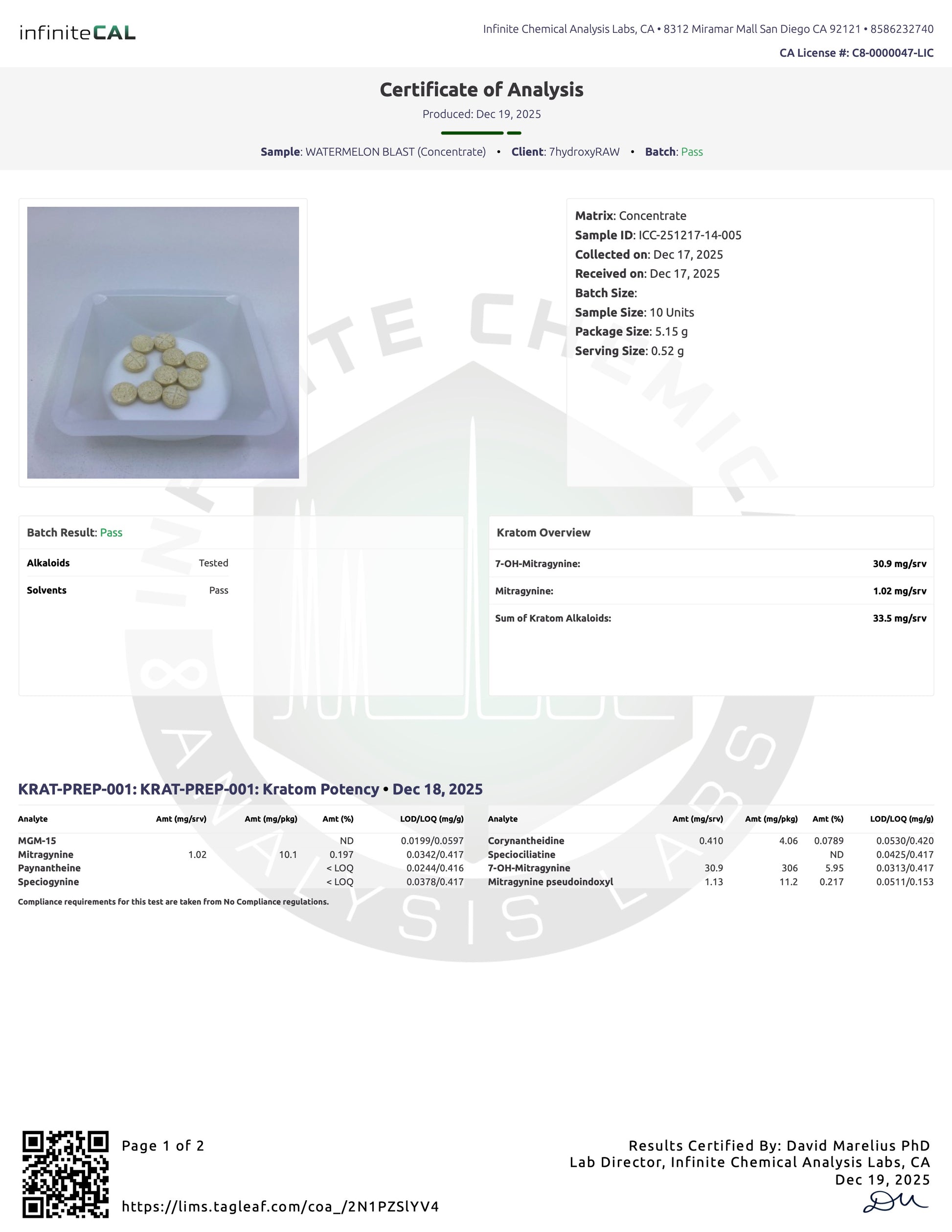 WATERMELON BLAST đđ 30MG (LABELED) - TOTAL ALKS 33.5MG (30.9MG 7-OH) - 12.19.25